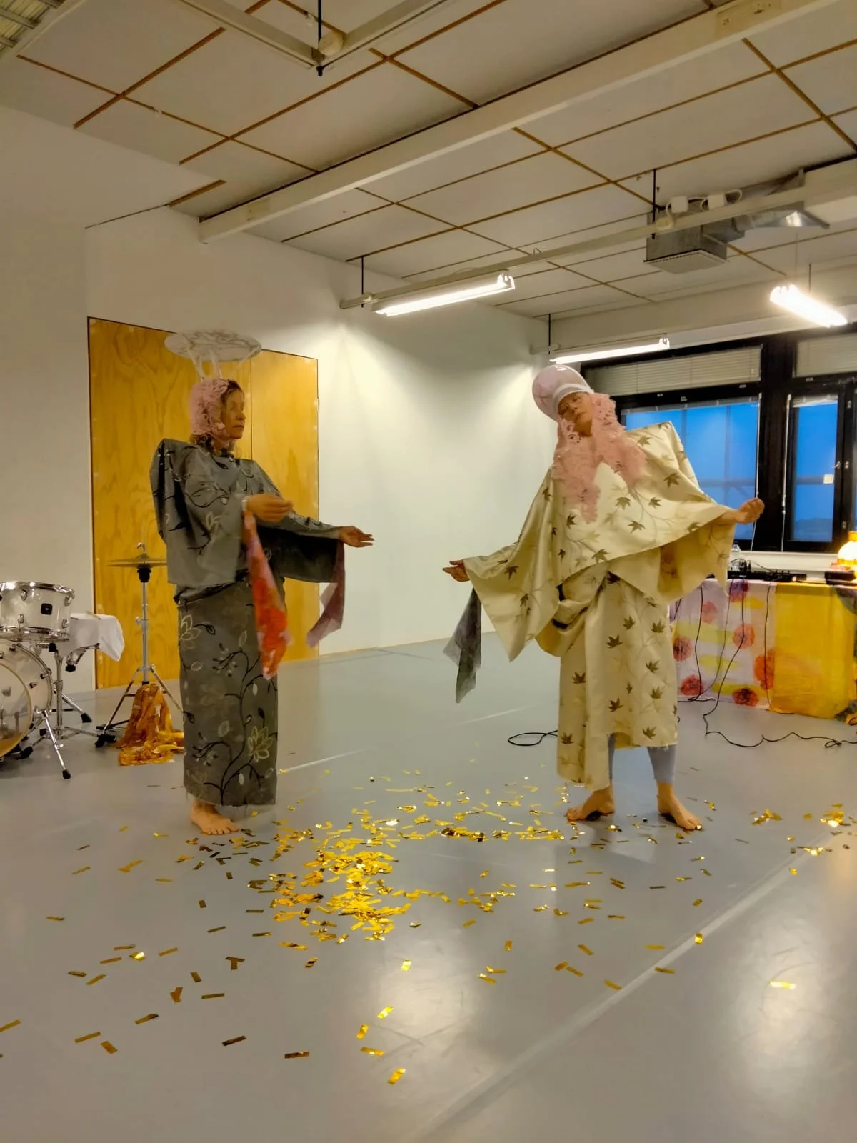 Overall design, choreography, performance, costumes, texts: Laura The Light of All, Performing, creating together, Lätsä's songs and own rap parts: Lätsä, Silk paintings on costumes: Sara Pathirane Mentor, space aid and recording: Lin Da